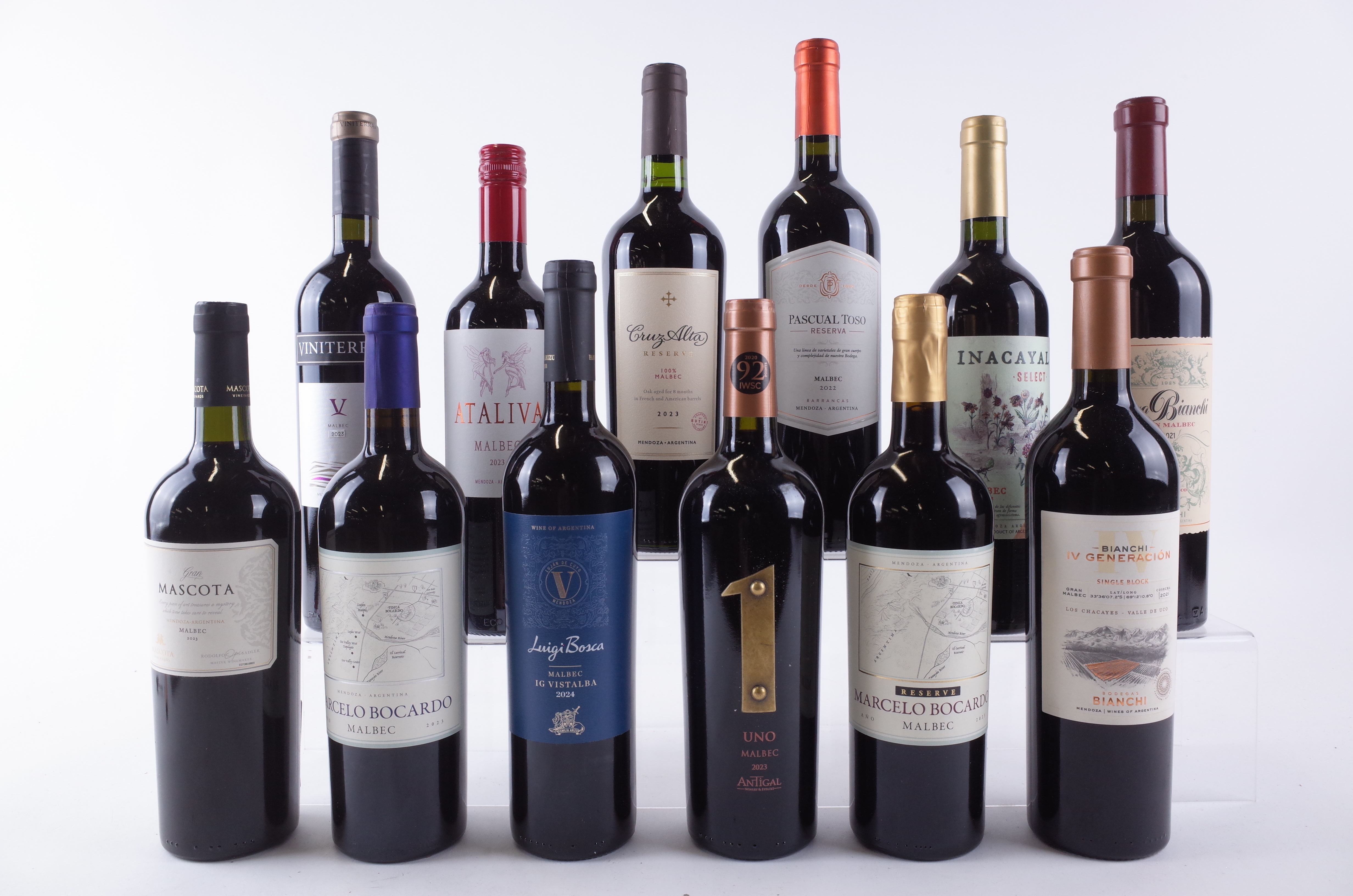 Mascota Vineyards Gran Mascota 2023; Marcelo Bocardo 2023 and Reserve 2023; Luigi Bosca IG Visalba 2024; Antigal Uno 2023; Bodega Bianchi IV Generación Single Block Gran 2021 and Enzo Bianchi Gran 2021; Pascual Toso Reserva 2022; Gruz Alta Reserve 2023; Ataliva 2023; Viniterra V 2023