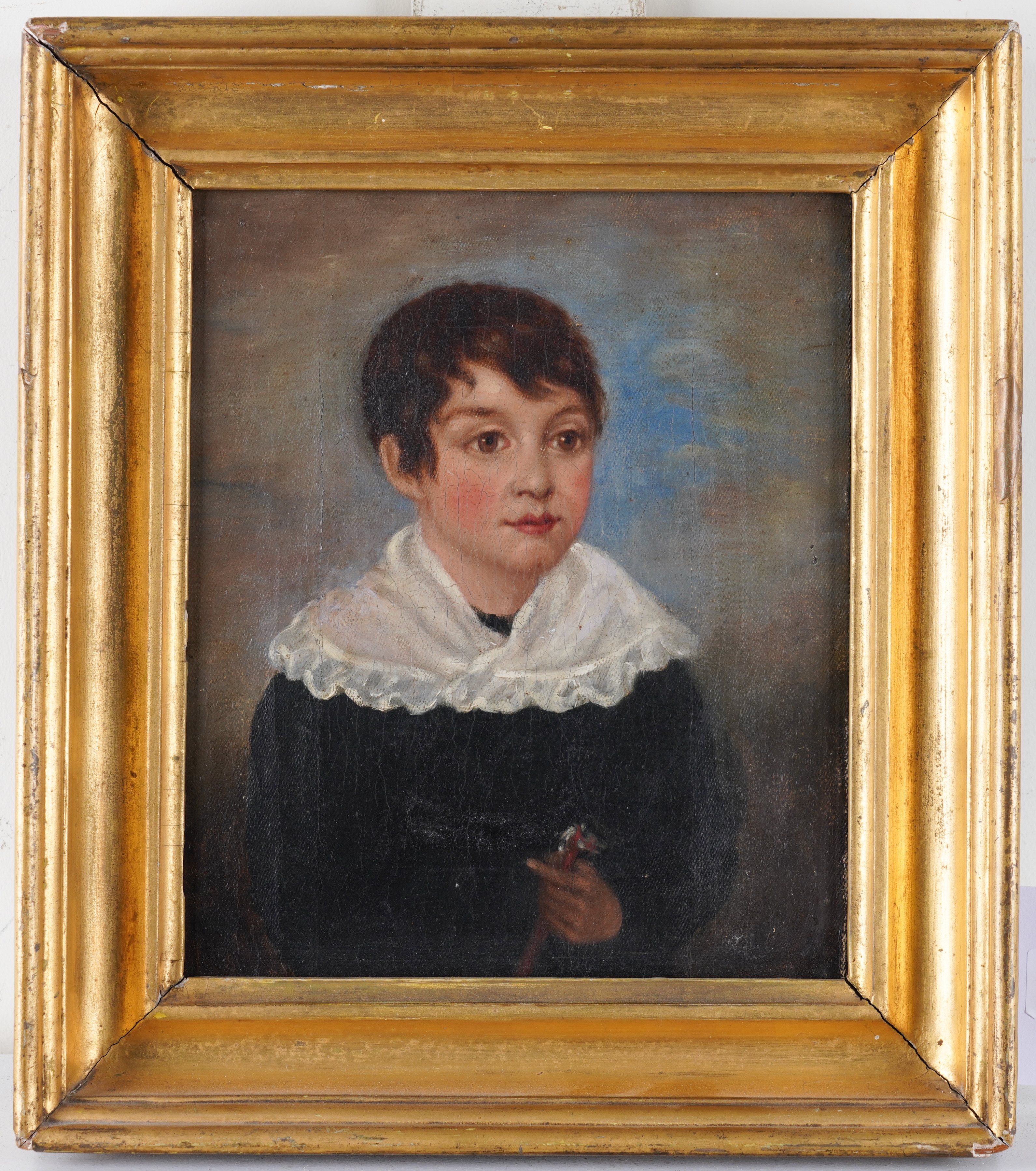 Framed dimensions of largest work (oil of boy): 34.5 x 30.5cm