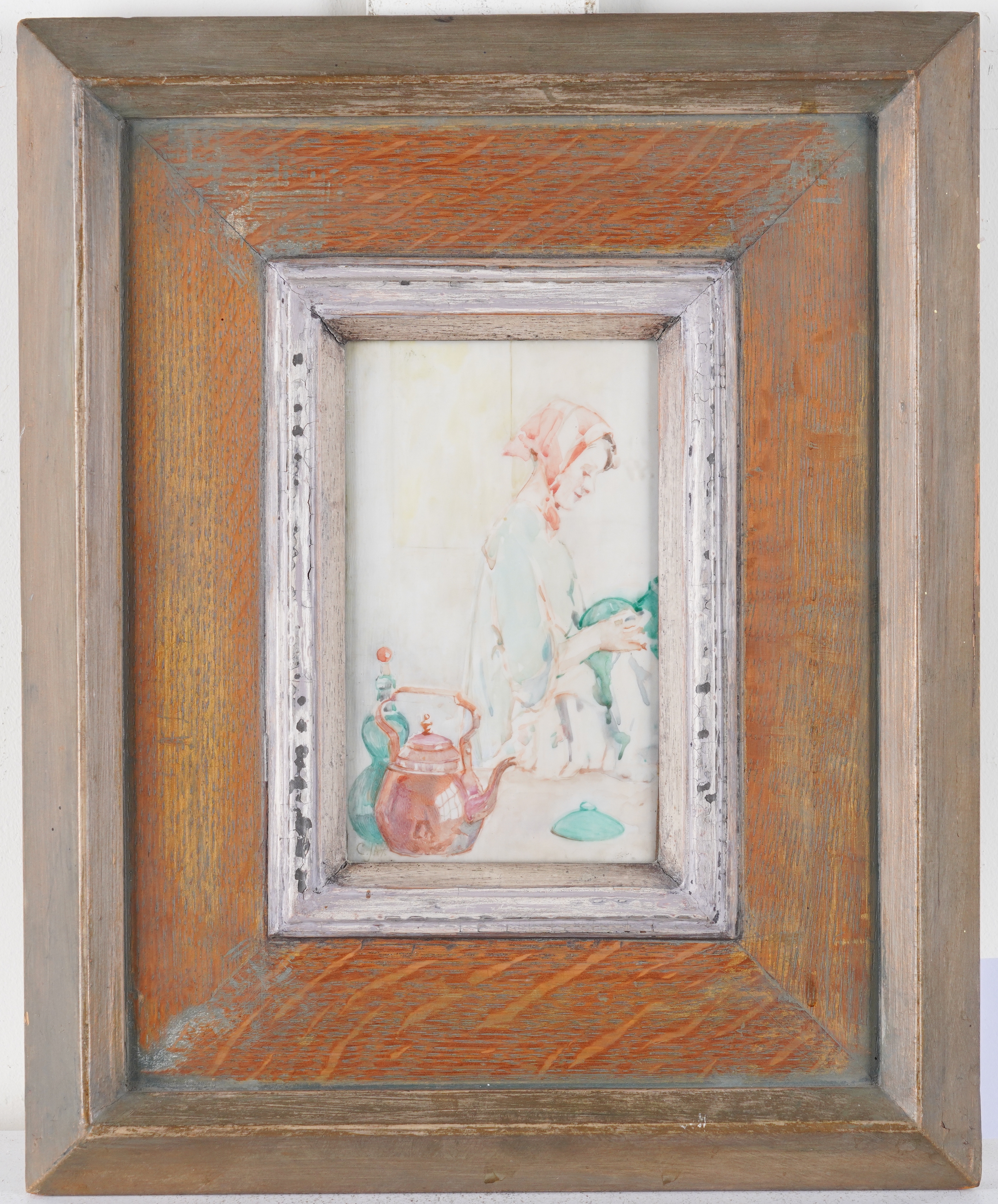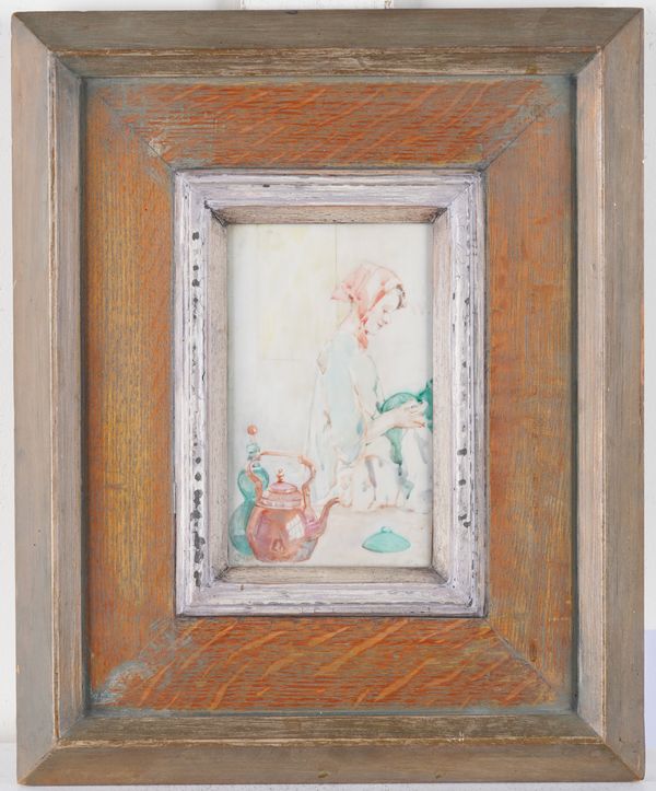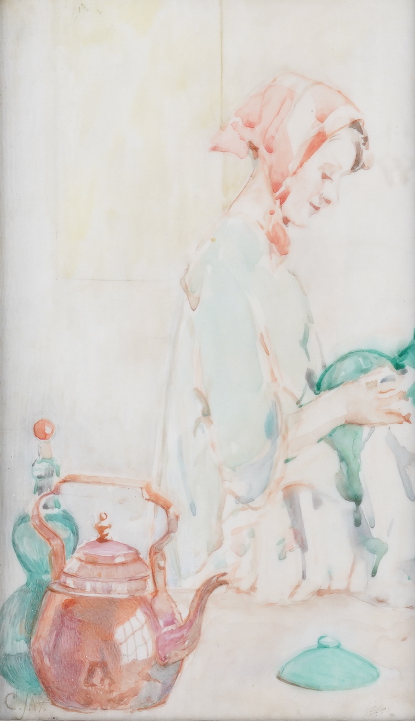 Woman wearing a red headscarf signed 'C. JAY' (lower left) watercolour 16 x 9.5cm