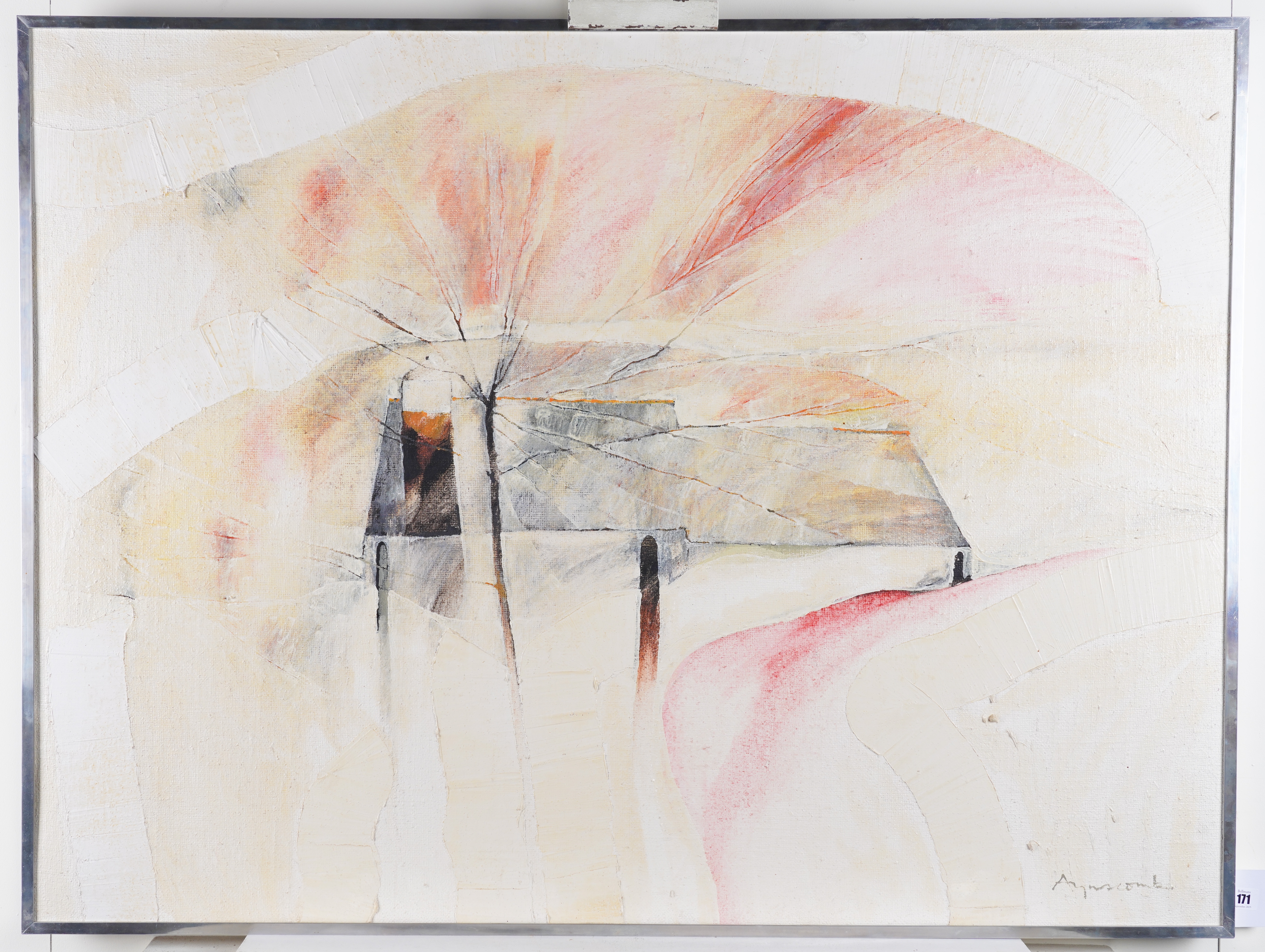Untitled, Abstract composition with red signed 'Aynscombe' (lower right) oil on canvas-board 92 x 122cm ARR