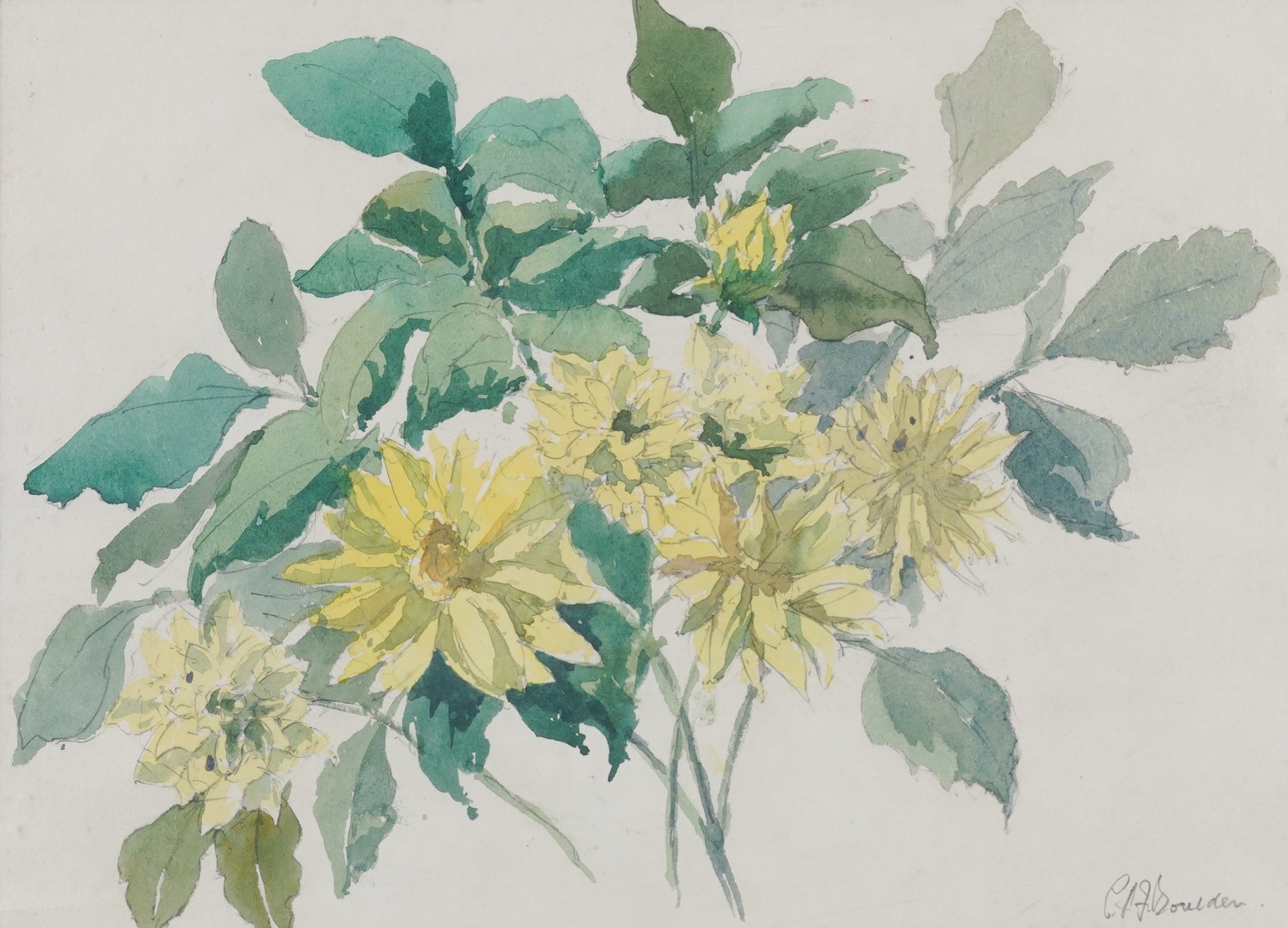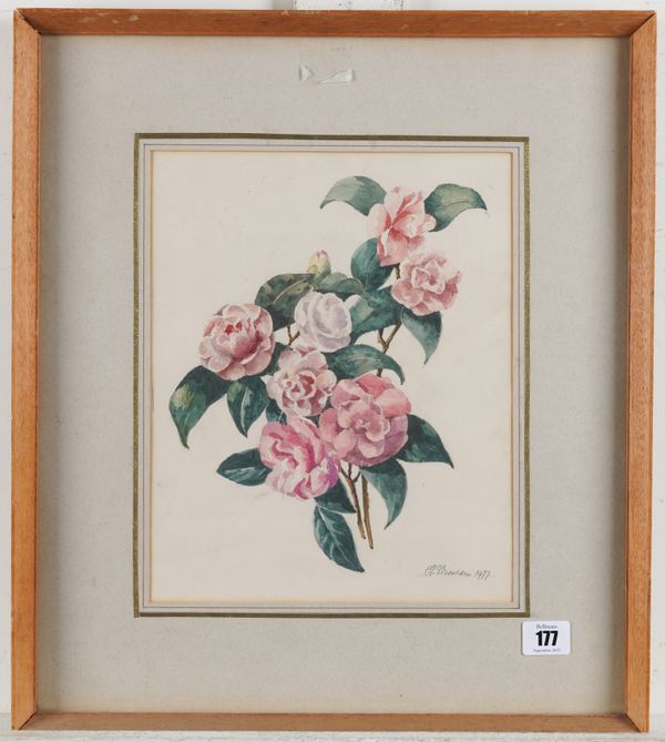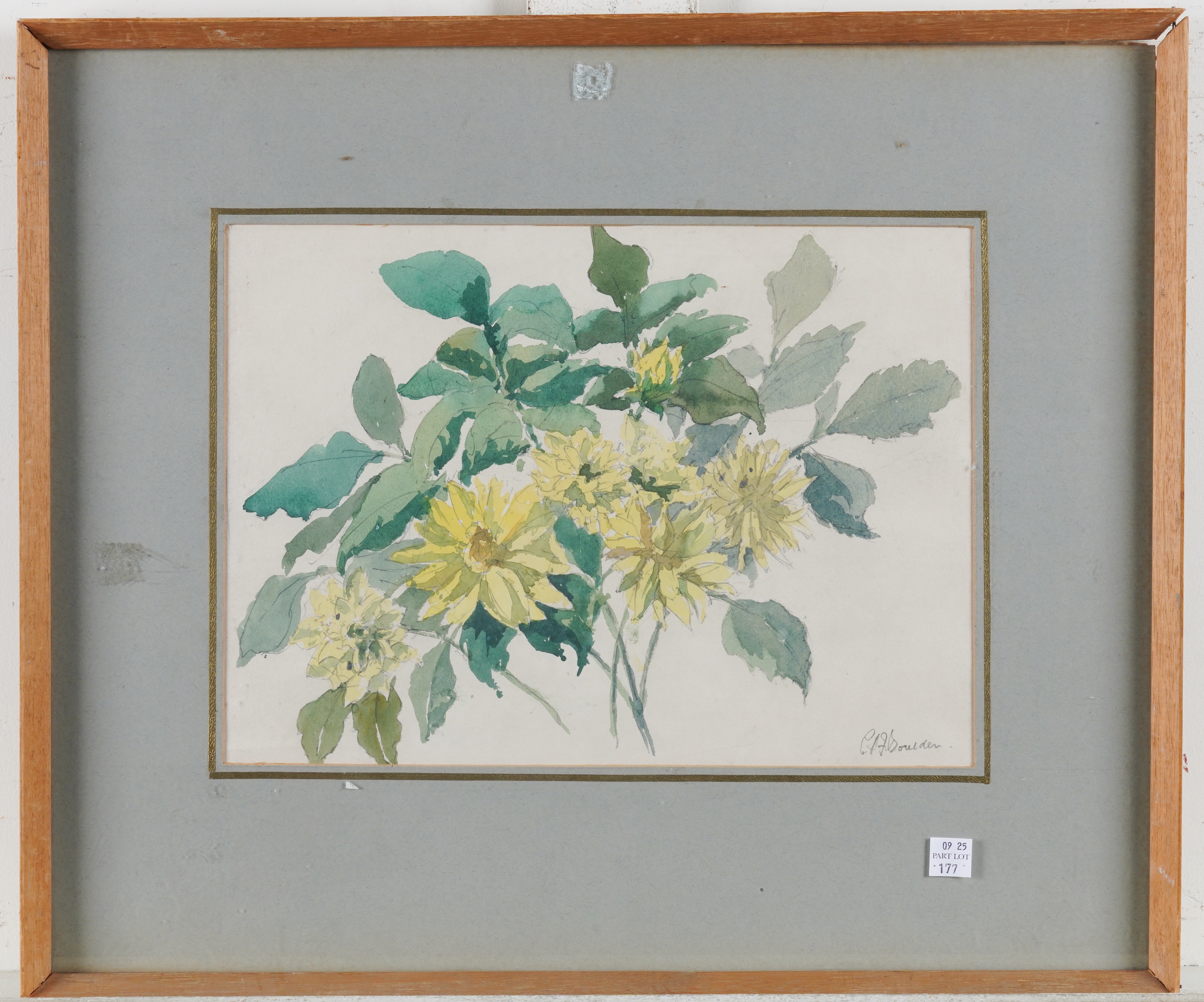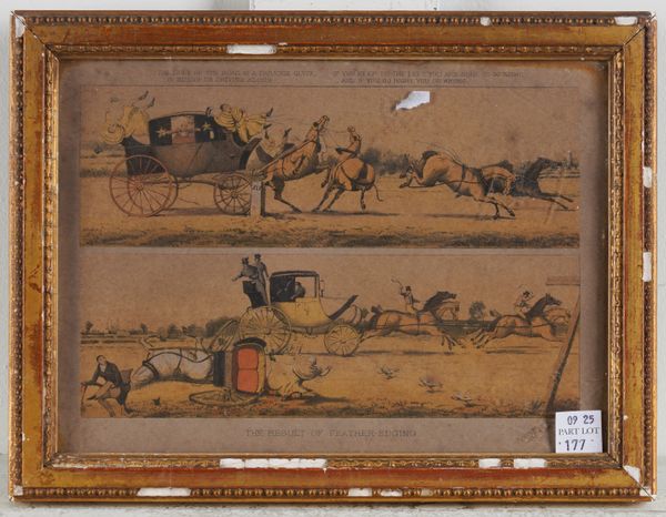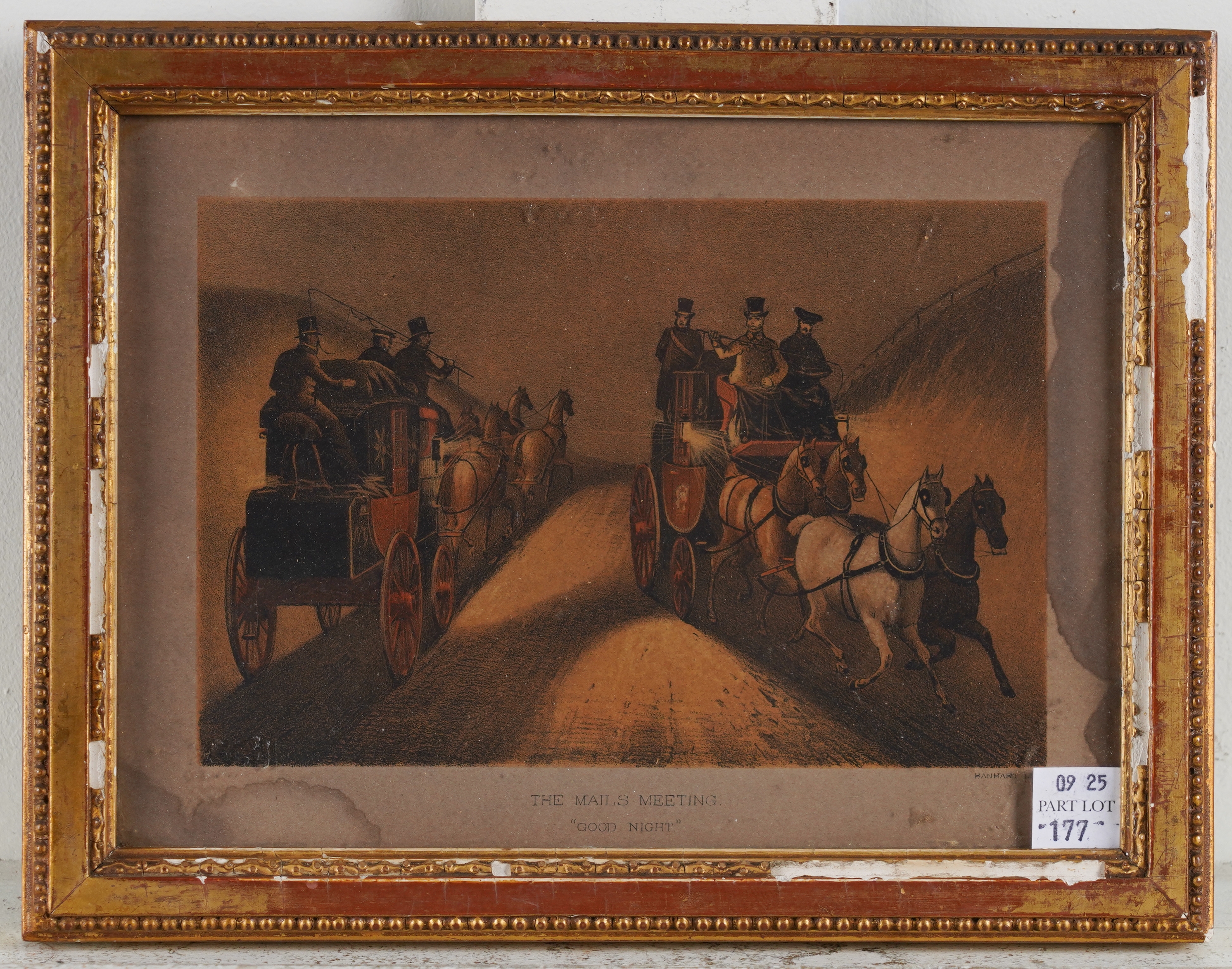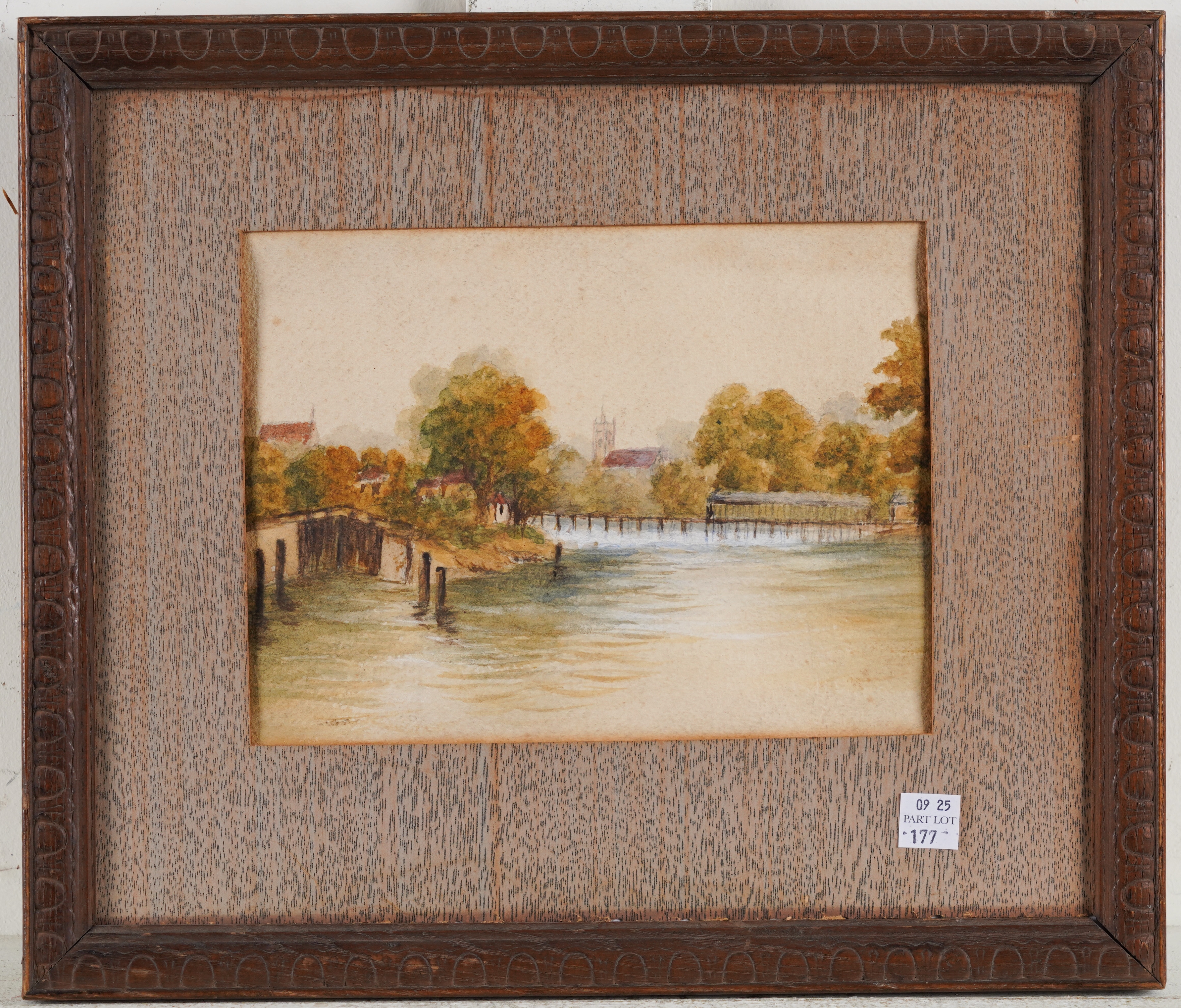 together with another watercolour of flowers by the same hand, 22.5 x 31.5cm; a 19th century watercolour by another hand of a river scene, 15 x 20cm; and seven prints of coaching scenes (4 unframed)