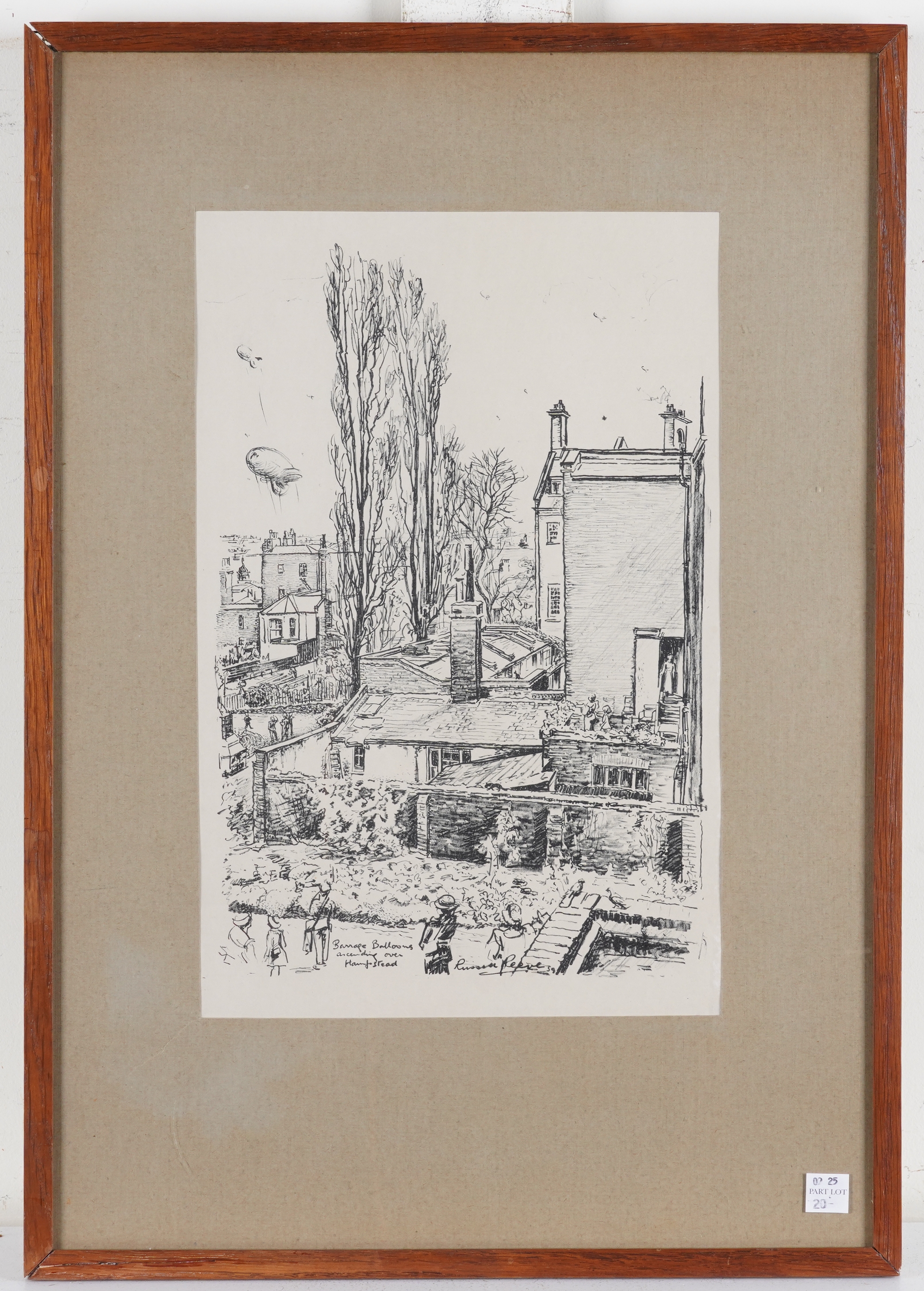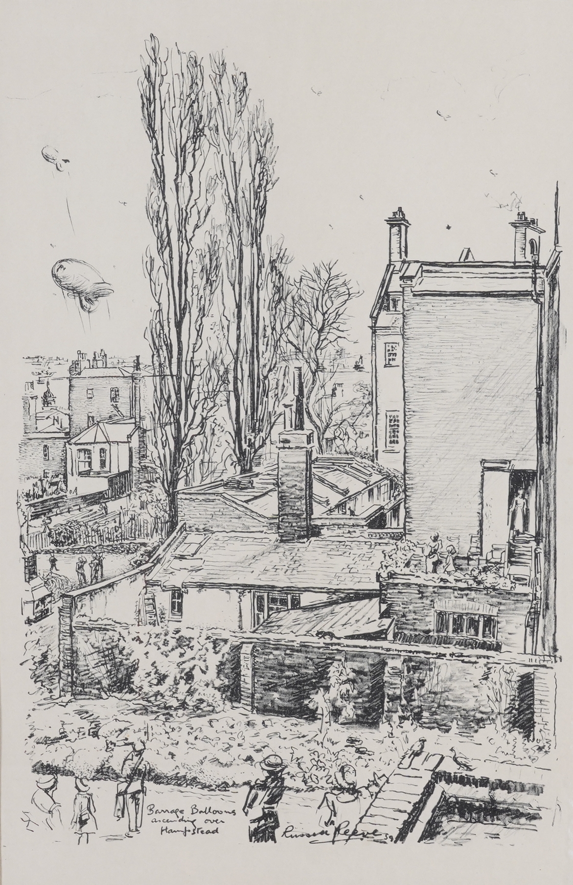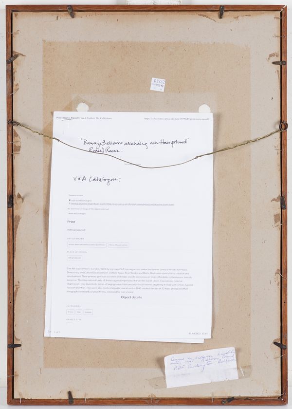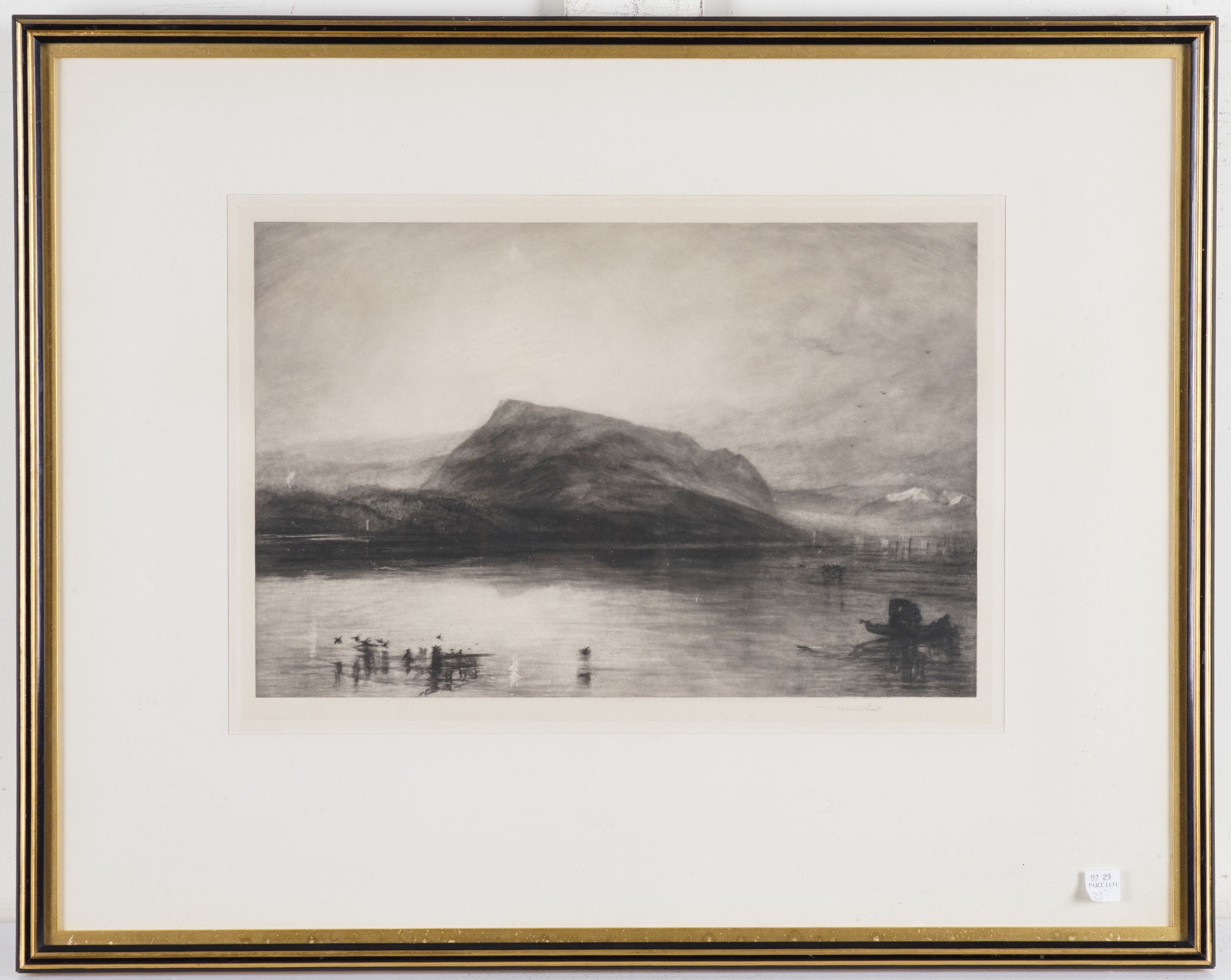 together with Mount Rigi at Dawn, signed engraving by Frank Short; Flatford Lock After John Constable, signed engraving by Frank Short; and Barrage Balloons over Hampstead, reproduction print after Russell Reeve